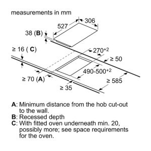 - Kích thước bếp: 38 x 306 x 527 mm