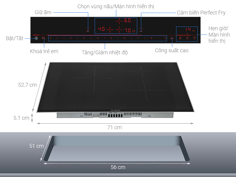 Thông số kỹ thuật Bếp từ âm Bosch PID775DC1E Serie 8 – 3 vùng nấu