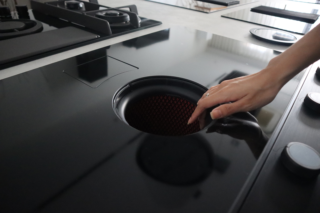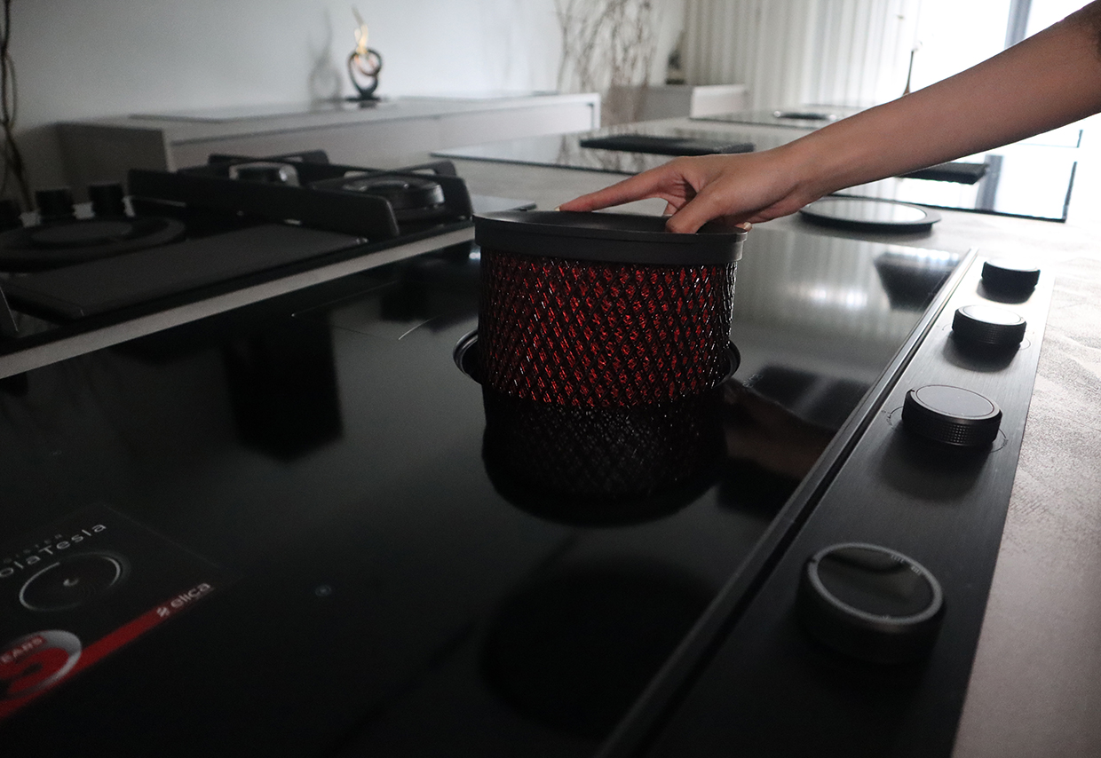 Các nút bấm với kiểu cách sáng tạo mang đến cho NikolaTesla Unplugged vẻ ngoài chuyên nghiệp và mạnh mẽ. Cấu trúc tay cầm ổn định, lớp vỏ từ tính bên ngoài dễ dàng vệ sinh và bảo dưỡng. Đồng thời, hoạt động vệ sinh bếp cũng trở nên nấu trơn tru và dễ dàng hơn nhờ nắp kính trung tâm che khu vực chiết xuất, chỉ kích hoạt khi cần thiết.