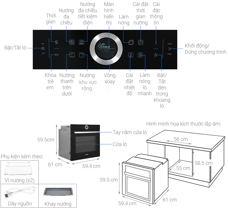 • Kích thước lắp đặt (CxRxS): 585 x 560 x 550 mm