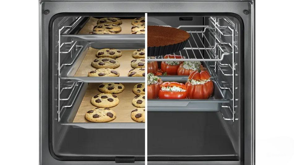 - Nướng cùng lúc trên 3 khay mà MỌI MÓN ĂN đều chín vàng hoàn hảo, từ trong ra ngoài, không lo chỗ cháy cạnh chỗ còn sống. Giờ đây, chuẩn bị bữa tiệc lớn chưa bao giờ dễ dàng đến thế!