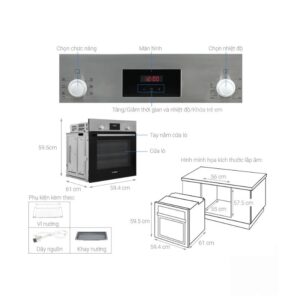 - Lò nướng này có thiết kế sang trọng với mặt kính đen và các chi tiết kim loại, tạo nên vẻ đẹp hiện đại và phù hợp với nhiều không gian nội thất.