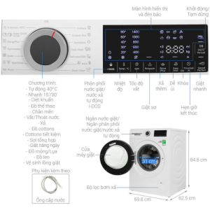 Chương trình giặt đa dạng: Máy giặt được trang bị 14 chương trình giặt đa dạng như: Cottons, Cottons Eco, Synthetics, Daily Wash, Delicates/Silk, Wool, Drum Clean, Rinse, Spin/Drain, Duvet, Sportswear, AllergyPlus, SuperQuick 15″/30″, Automatic 40˚C, đáp ứng mọi nhu cầu giặt giũ của gia đình bạn.