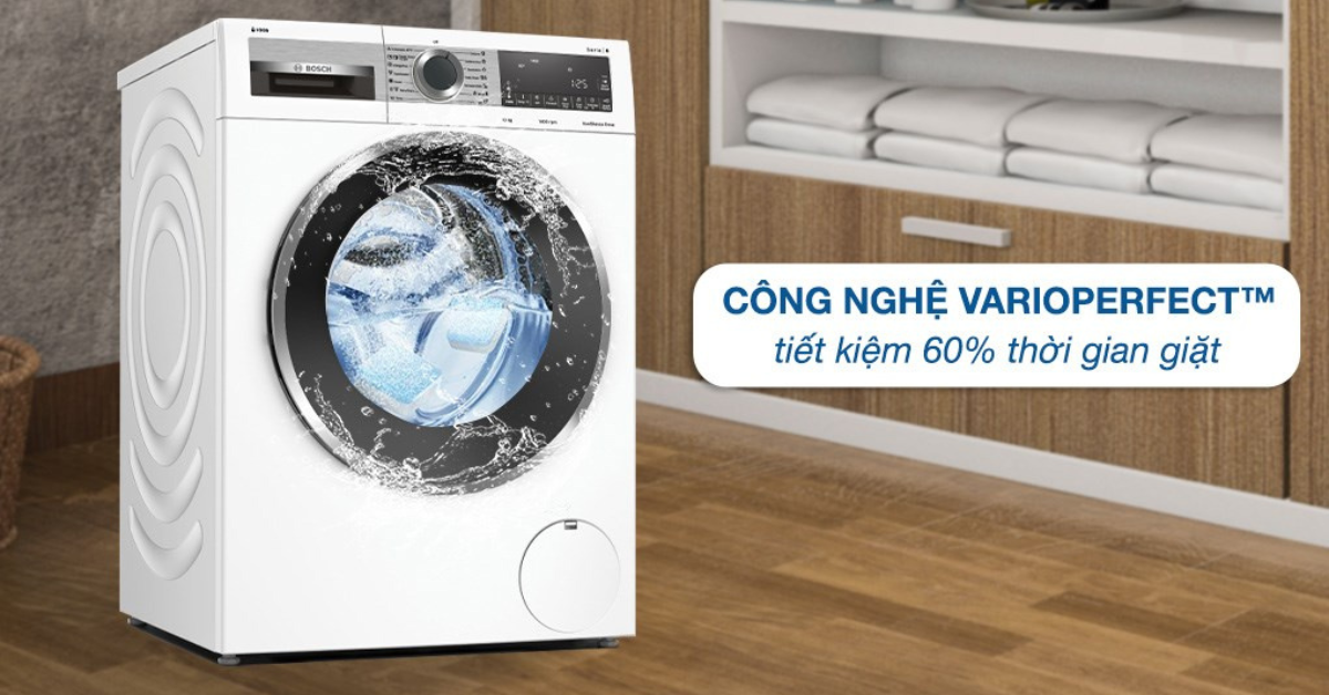 Công nghệ Vario Perfect tiết kiệm thời gian và năng lượng: Công nghệ Vario Perfect cho phép người dùng lựa chọn chế độ giặt nhanh SpeedPerfect (tiết kiệm đến 60% thời gian) hoặc chế độ giặt tiết kiệm EcoPerfect (tiết kiệm hơn 50% điện năng và nước), tối ưu hóa hiệu quả giặt giũ.