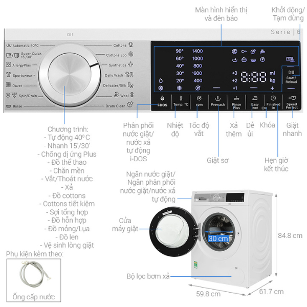 Thông số MÁY GIẶT BOSCH SERIE 6 WGG254A0SG I-DOS 10kg