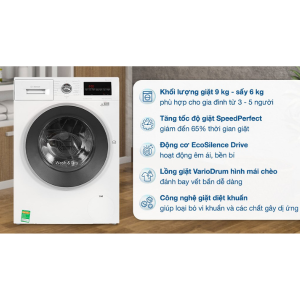 | Khối lượng giặt/sấy | Giặt 9 Kg – Sấy 6 Kg |