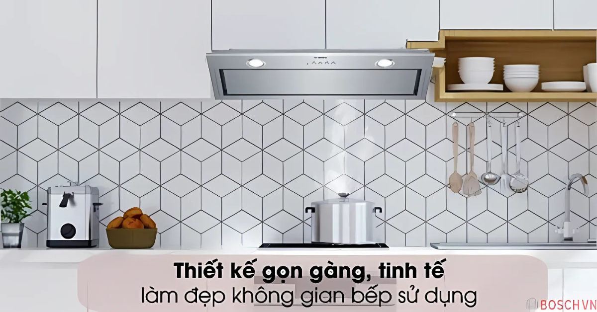 Thiết kế âm tủ hiện đại, sang trọng: Máy hút mùi Bosch DHL785C Series 6 được thiết kế âm tủ, tiết kiệm không gian, phù hợp với phong cách bếp hiện đại. Chất liệu thép không gỉ cao cấp chống bám bẩn, dễ dàng vệ sinh, giữ được vẻ sáng bóng lâu dài.