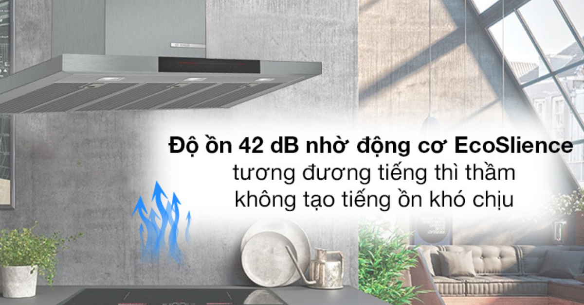 Vận hành êm ái, độ ồn thấp: Công nghệ EcoSilence giúp máy vận hành êm ái với độ ồn tối đa chỉ 41dB, không ảnh hưởng đến sinh hoạt. Đây là công nghệ do Bosch nghiên cứu và phát triển để giúp các thiết bị hút mùi có công suất mạnh mẽ nhưng hoạt động lại vô cùng êm dịu.
