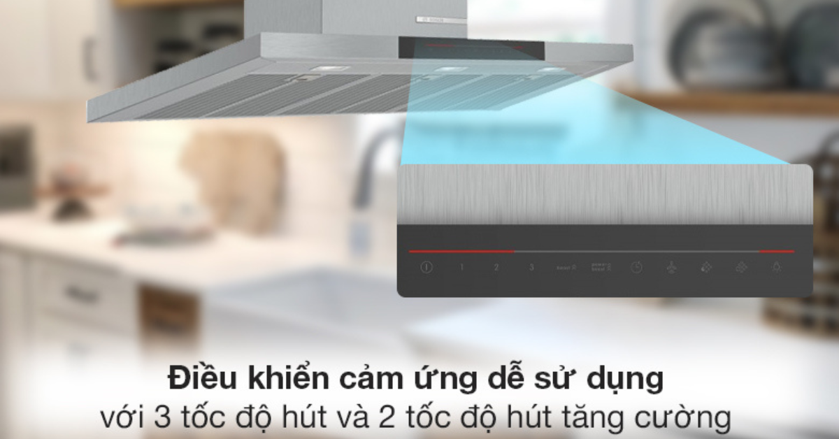 Thông số Máy hút mùi treo tường Bosch DWB98JQ50B Serie 8 – Khổ 90cm, công suất mạnh