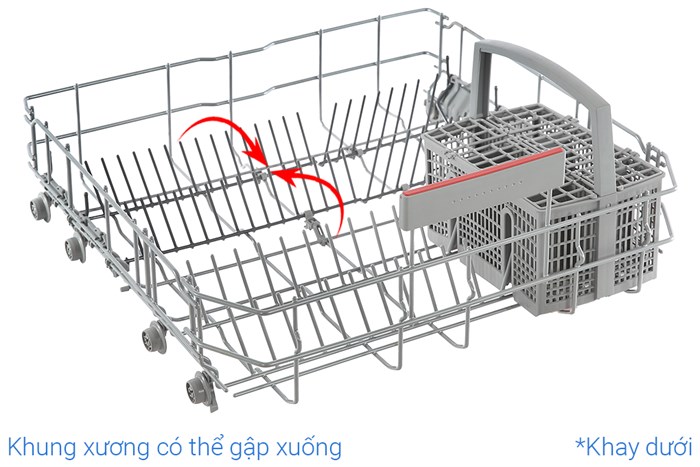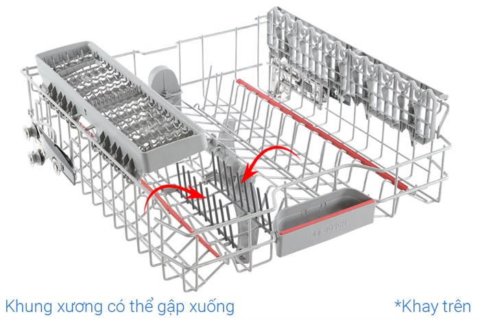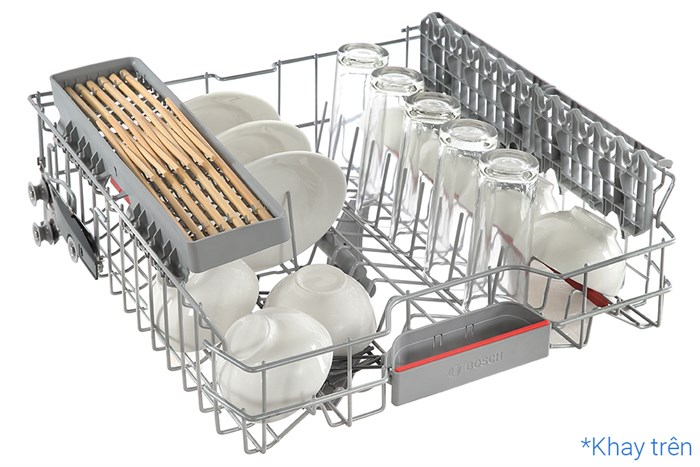 – Khay trên: trang bị hệ thống khay VarioFlex được tinh gọn với kệ dao kéo tăng cường tính linh hoạt, tạo thêm không gian để chứa bát đĩa.